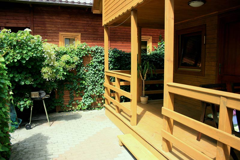 Oferujemy do Państwa dyspozycji w pełni wyposażony, drewniany, piętrowy domek letniskowy. Domek znajduje się na samodzielnej, bardzo zielonej działce, usytuowanej na początku rzędu kilkunastu podobnych działek. Całość położona na skraju sosnowego lasu, w bardzo cichej i spokojnej części Juraty, z dala od ulicy. Od pięknej promenady ciągnącej się wzdłuż zatoki, przez całą Juratę, domek dzieli zaledwie kilkadziesiąt metrów, a od nadmorskiej plaży 15 minut spaceru.